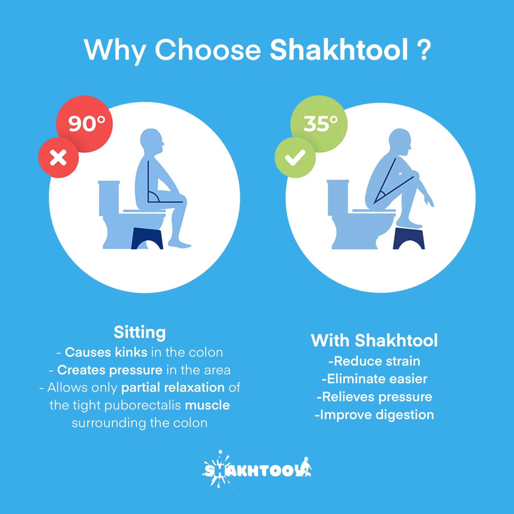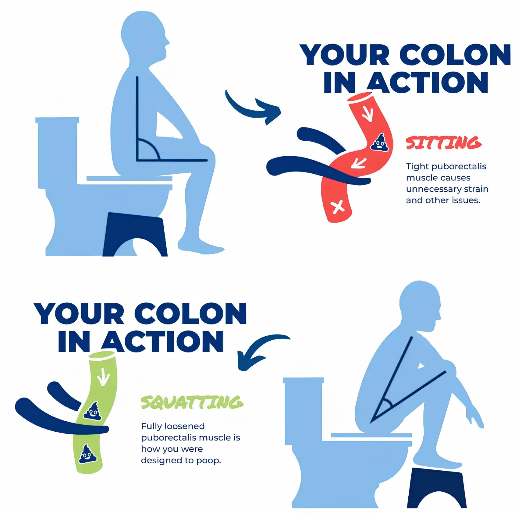 Sitting keeps thepuborectalis muscle tight, causing strain. Squattingloosens this muscleandstraightens the rectumfor easier bowel movements. The Squat Master helps you achieve thisnatural postureeffortlessly.